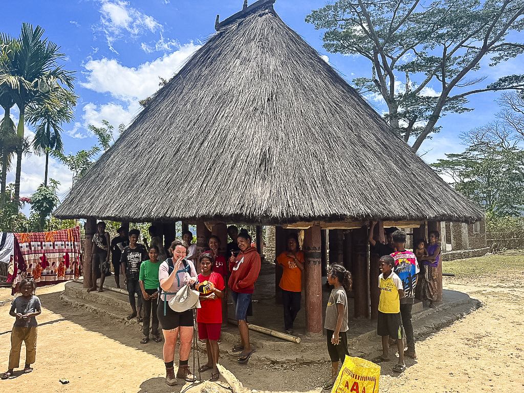 But it’s soon time. A 4WD convoy brings us to the one-kiosk village of Asumanu, having stopped already near bigger Bazartete to explore the scene of a WWII battle. There, Guy took us into the bush and showed us some remaining Australian-dug gun pits and the original gravesite of two Australians killed there (their bodies were repatriated).