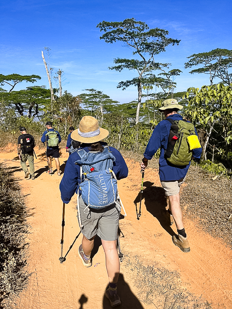 Life-changing. It’s too often said and written. But while I’m putting one gaiter-covered leg in front of the other, and striding comfortably with fancy carbon hiking poles, something in me switches on. The narrow singletrack trails we’re hiking have dry-season grasses bending over them, and there are protruding rocks in random places, so my eyes are busy flicking up from where I am to where I’m going. I try, as often as I can, to look up, because I can’t believe what I’m seeing. At one point, I round a bend and the view of sharp mountains in the distance comes into focus. I do a double-take: I could be in the European Alps. I came here expecting heat and unforgiving terrain: Instead, I find amazement.