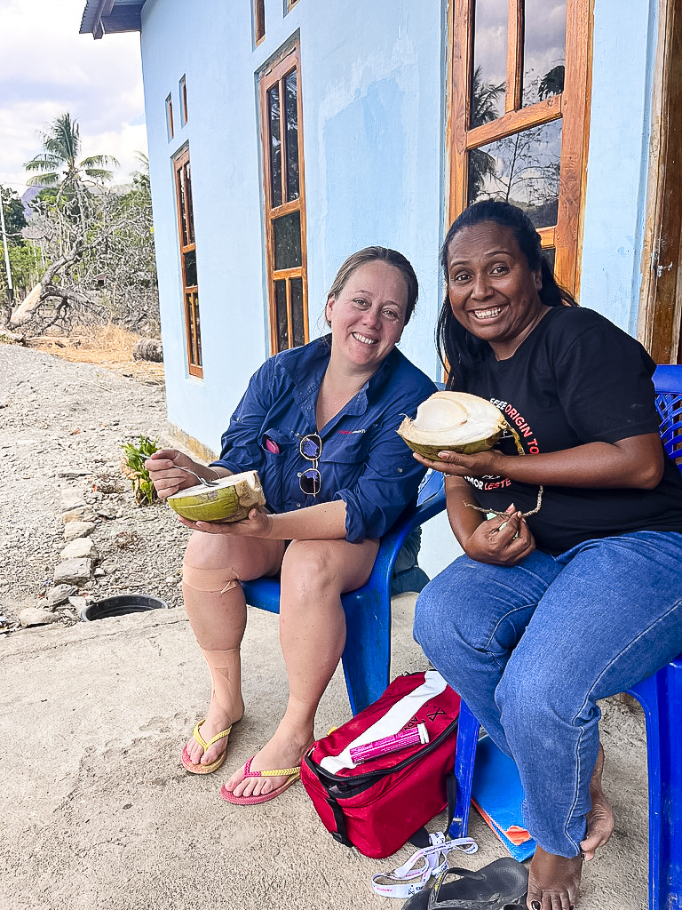 It’s 25 years since the 1999 ballot for independence, yet the destruction wrought by the departing Indonesians and Indonesia-trained militia is still evident: Houses are basic, and sanitation is almost non-existent. The loo is a squat toilet with a mandi shower (a bucket and a tub of water) nearby; we share it with the village. It’s all about hand sanitiser and trying to keep ourselves well. We sit down in a neighbouring family’s home for a Timorese dinner—a variation of rice, two-minute noodles, vegetable and meat soup, fried fish, chicken, beans and greens—and watch the sun go down between trees in the distance. Tomorrow, it begins.