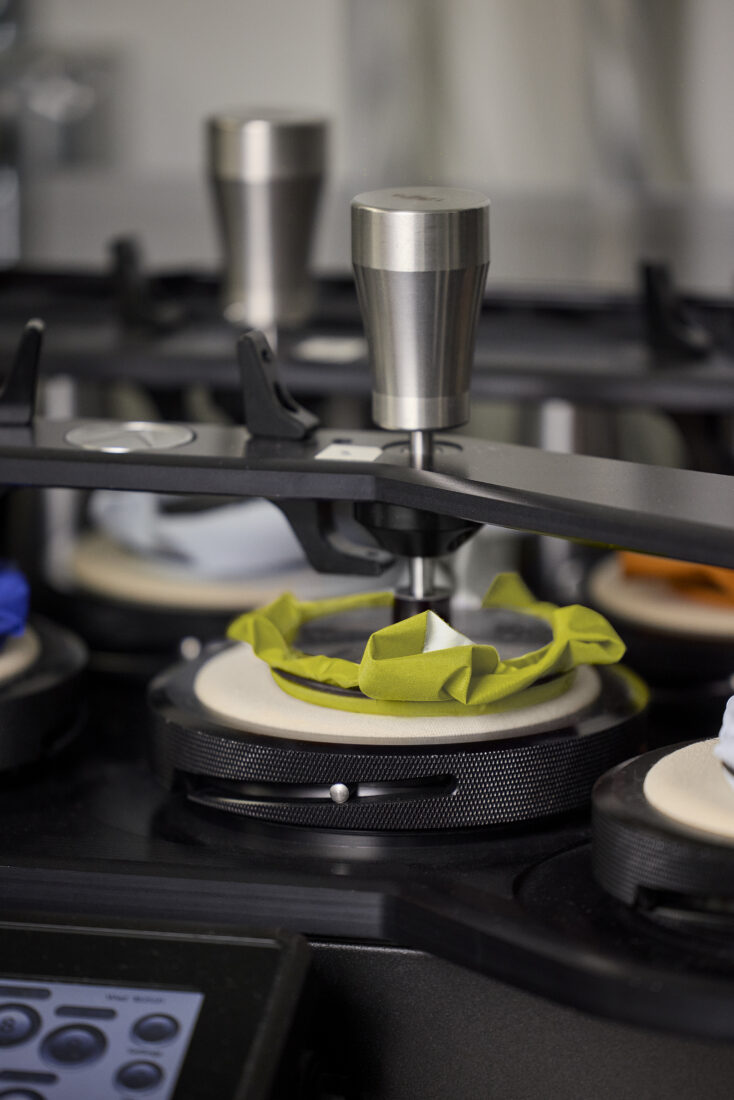 There have been further developments, too. In February this year, Arc’teryx released Gore-Tex Pro ePE outerwear. These products have the same PFAS-free ePE membrane, but Gore-Tex Pro ePE products use a different range of rugged, recycled face fabrics and backers that are optimised for both performance and durability. And while Arc’teryx’s lineup of ePE products works really well for most outdoor adventure applications, Gore-Tex Pro ePE, which is designed for extreme or extended missions, takes this to the next level. While regular Gore-Tex ePE hardshells are subjected to tests of 76mm of rain per hour, Gore-Tex Pro ePE hardshells—such as Arc’teryx’s Rush, Beta AR and Alpha SV product families—must withstand 550mm per hour, along with gale-force winds. Abrasion resistance is increased as well, with Gore-Tex Pro ePE able to withstand a minimum of 20,000 abrasions on the Martindale test compared with 5,000 abrasions for regular Gore-Tex ePE. Moreover, Arc’teryx runs its standardised abrasion test to go over and above industry norms. It also extensively field tests all products in British Columbia’s rugged, wet and demanding Coast Mountains.