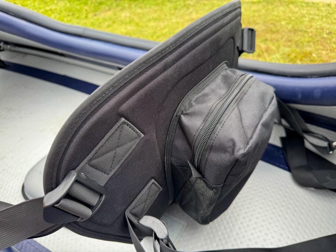 The dual-layer backrest was sturdy enough to provide some back support, and I was able to easily adjust the straps to pull the backrest forward for a stronger paddling position or lean it back during cruising and filming. I set the EVA foam footrests to fit my shorter legs and was able to brace against them to maintain a comfortable position throughout the day.