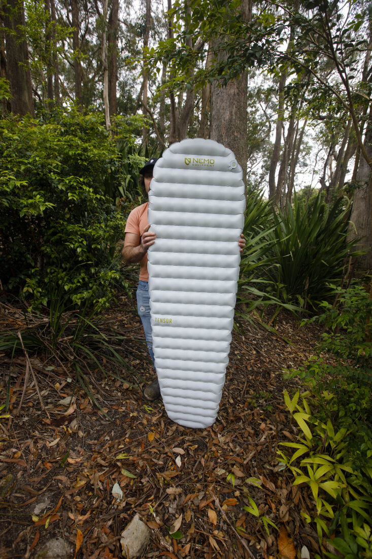 Be aware that the 246g weight (Nemo claims 240g) does not include the bag, tie-up strap or (importantly) the Vortex Pump Sack. Together, the whole package on my scales came to 323g. But gram counters, here’s the thing: You don’t need the pump sack! Ditch it, blow up the Tensor Elite directly by mouth, and save 62g.