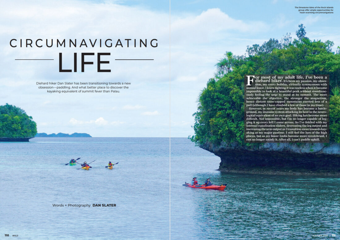 Diehard hiker Dan Slater has been transitioning towards a new obsession—paddling. And what better place to discover the kayaking equivalent of summit fever than Palau.