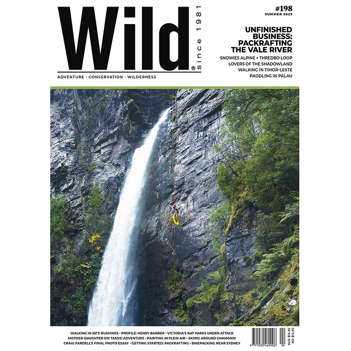Not only is Dec 1 the official start of Summer, it’s also the day Wild #198, our Summer 2025 issue, officially goes on sale. And is it ever a cracking issue! Being Summer, paddling is of course featured. The issue has a photo essay on a spectacular packrafting trip down Tassie’s Vale River (check out that cover shot!), a sea kayaking adventure from in Palau, and tips on how to get into packrafting. But paddling is just the start. There are walking stories from NZ’s Ruahines and from Timor-Leste, along with a very special and very personal 4,000+ word feature by Victoria Bruce on an extended trip through SW Tassie with her young daughter; it’s beautifully written story full of both pain and hope. And for our Track Notes, we explain how to improve on Kosciuszko NP’s new Snowies Alpine Walk (which shows great promise but has a flawed network design) by turning it into an amazing four-or-five-day loop. It’s a perfect high-country trip for Summer!